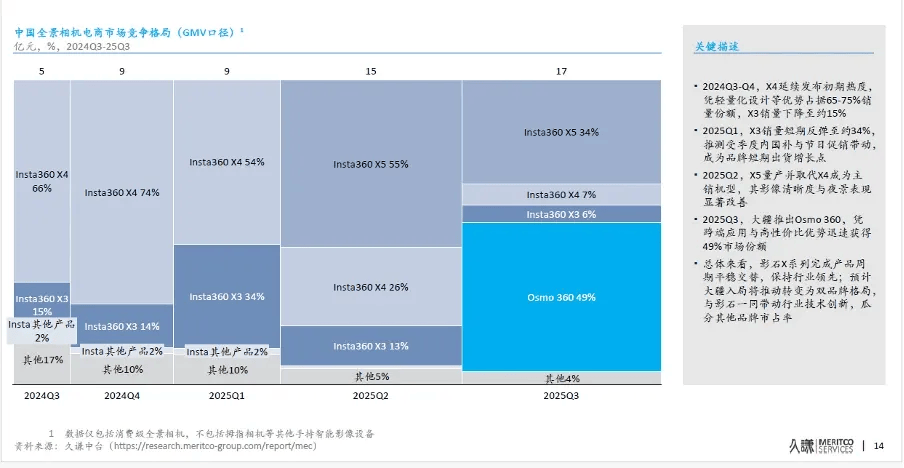影石所在的全景相机赛道,原本接近垄断,市占率一度超过67%。但自2025年7月大疆带着 Osmo 360杀进全景相机市场以后,竞争格局迅速被打破。
